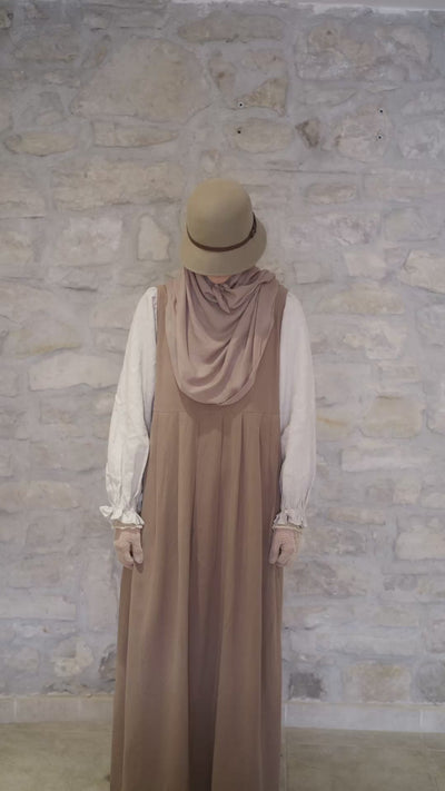 Design Notes: Inspired by the quiet elegance of late 19th-century silhouettes, reimagined as a single dress that evokes the layered look of a shirt beneath a sleeveless overdress, with the comfort of one piece.